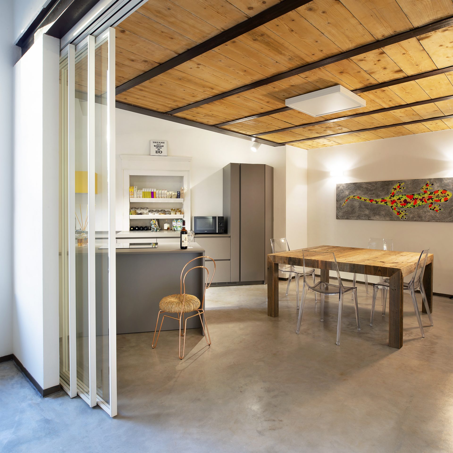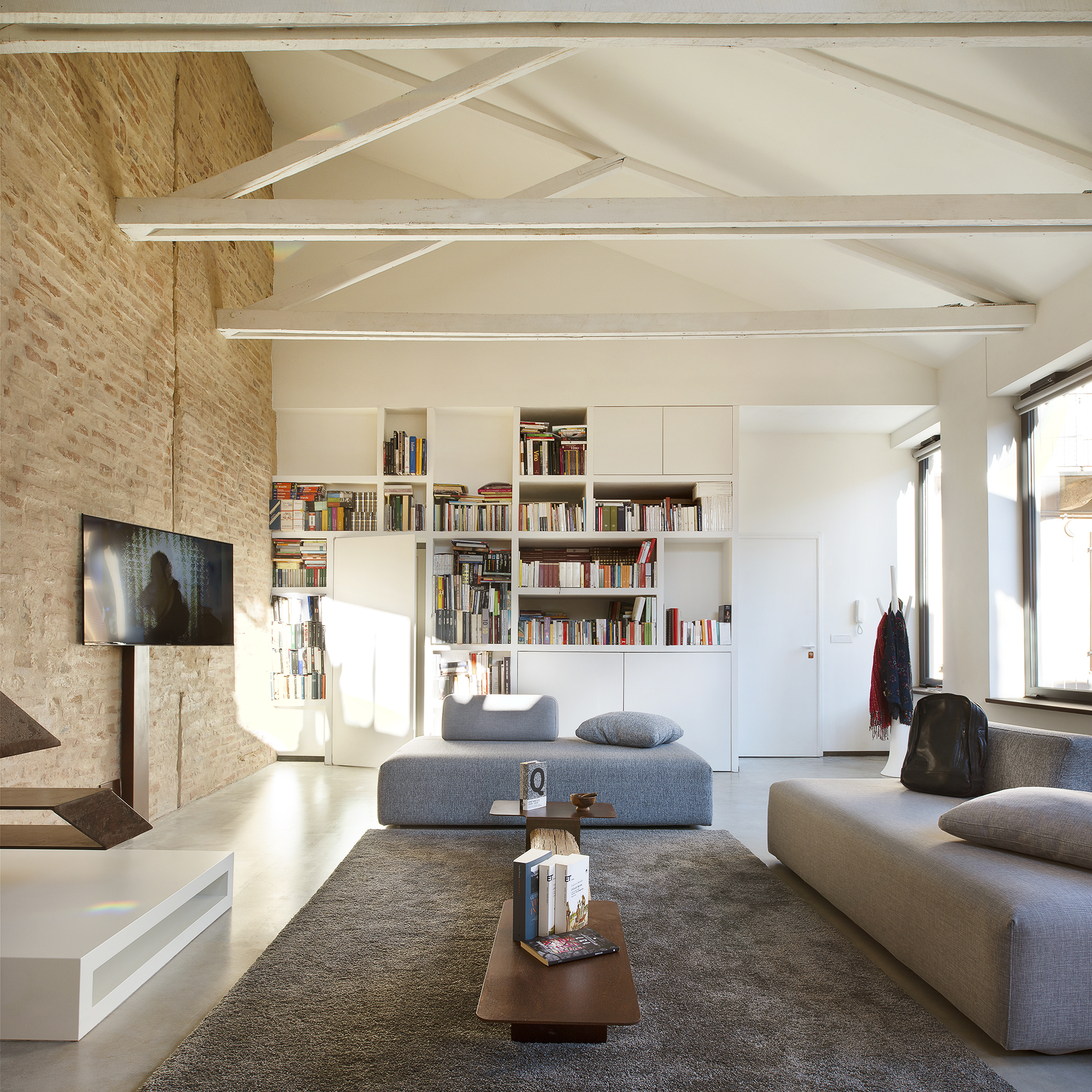 Da un atipico magazzino di fine 800, nasce il Tree Loft.Materiali reinterpretati danno vita ad uno spazio dove interno ed esterno sono sovvertiti ed il contrasto tra ambiente naturale e materico è netto.